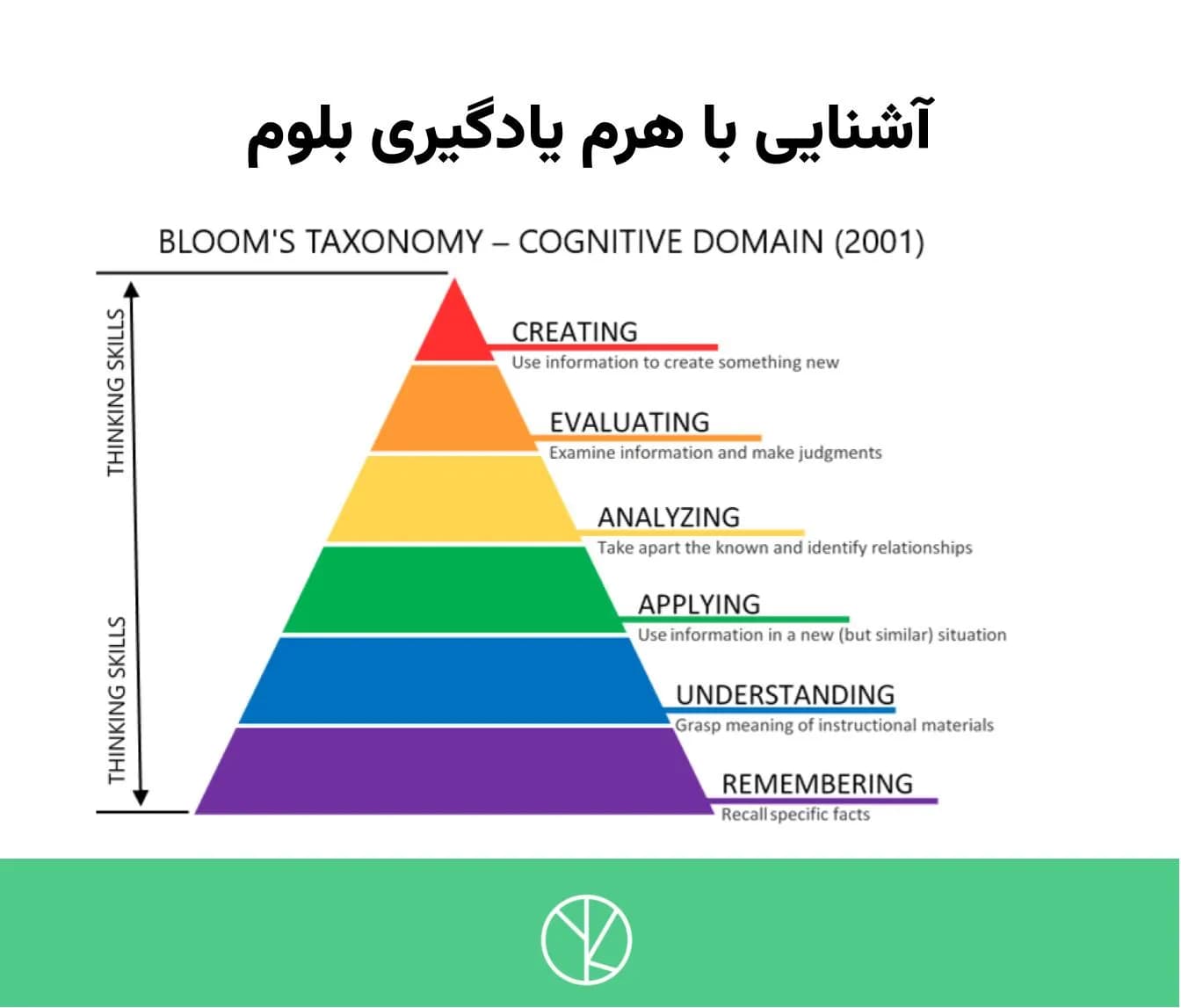 هرم یادگیری Bloom (Bloom Taxonomy) راهنمایی کلی از انواع مهارتهای شناختی به ما میدهد. به ترتیب از مهارتهای ساده تا سخت و پیچیدهتر شامل: به خاطر سپردن- درک- کاربرد- تجزیه و تحلیل- نقد و ارزیابی- خلق و ابداع.